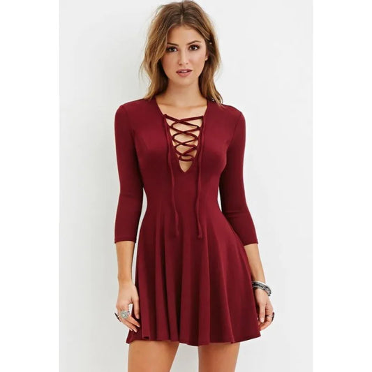 Women's Sheath Dress Sexy Streetwear V Neck Long Sleeve Solid Color Short Mini Dress Holiday