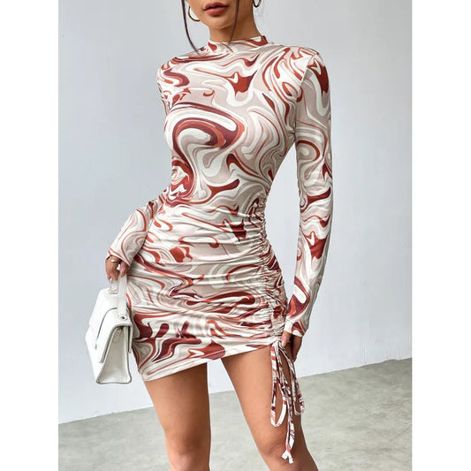 Women's Sheath Dress Elegant Streetwear High Neck Printing Long Sleeve Color Block Above Knee Holiday Party