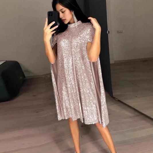 Wholesale Women's Elegant Romantic Streetwear Zipper Solid Color Club Banquet Date Round Neck Sleeveless Sequin Dress