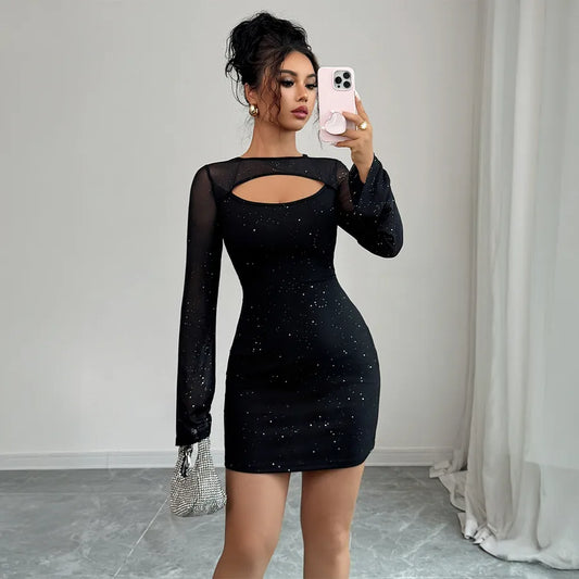 Sexy Slim Long Sleeve Bodycon Dress Women's Autumn New Sexy Tight Nightclub Pure Color Trendy Midi Party Clubbing Dress