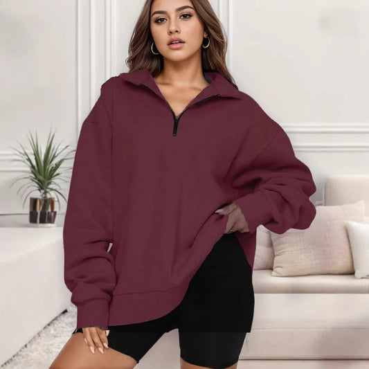 Fall Winter New Women's Casual Long Sleeve Hoodie Sweatshirt European Style Zipper Pullover Sportswear Street Fashion Loose Fit