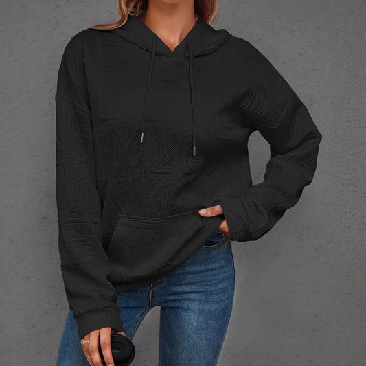 Autumn Winter Hooded Jacket Women's Loose Long Sleeve Pure Color Casual Fashionable Sweatshirt Comfortable Polyester Commute Style