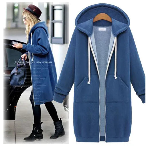 Women's Hooded Mid-Length Long Sleeve Sweatshirt Autumn Winter Fashion Casual Style Polyester Fabric Comfortable Fit Sweater