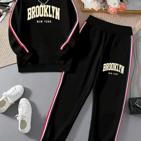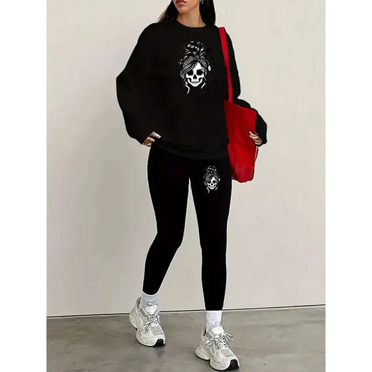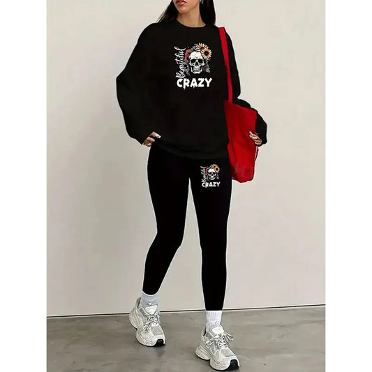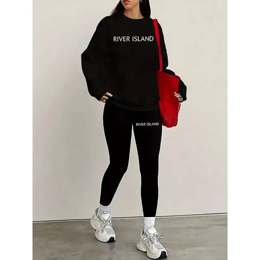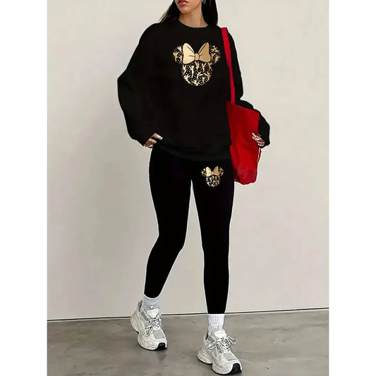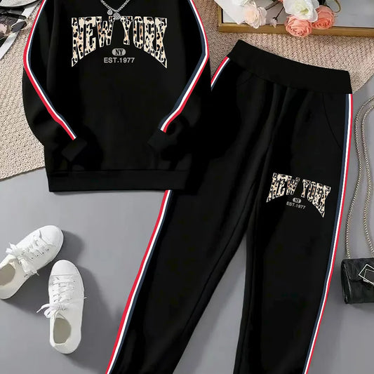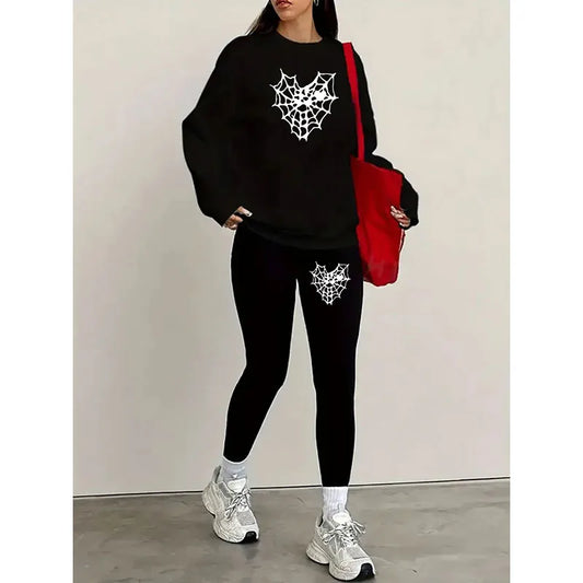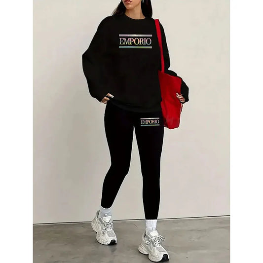 Ladies Fashion Print Round Neck Sweatshirt Set Long Sleeve Long Pants Sportswear Elegant Casual Outfit Autumn Winter New Arrival