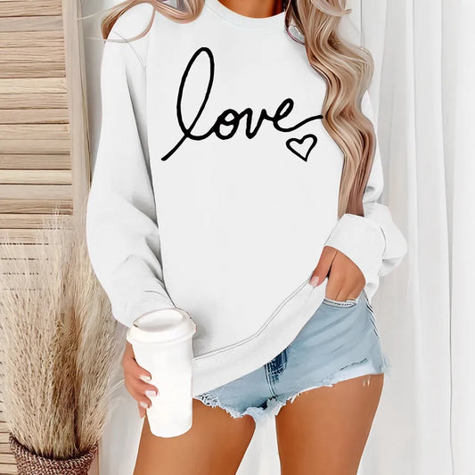 Heavyweight Loose Fit Heart & Love Print Long Sleeve Sweatshirt Women's Street Style Comfortable Cotton Polyester Blend Hoodie