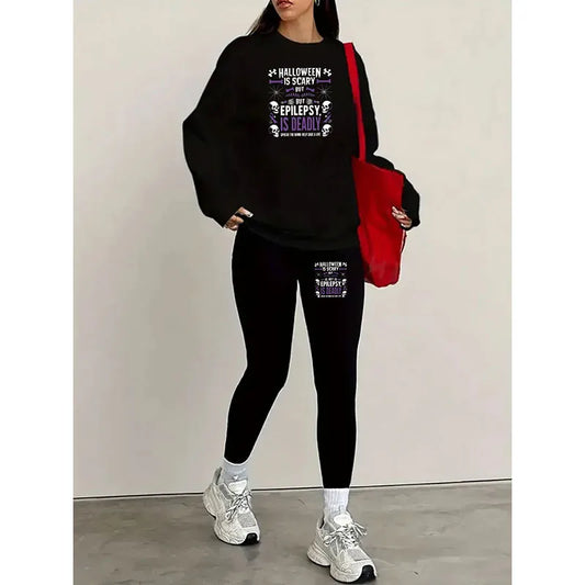 Ladies Fashionable Print Round Neck Long Sleeve Sweatshirt Set Autumn Winter Sportswear Casual Comfortable Polyester Tracksuit