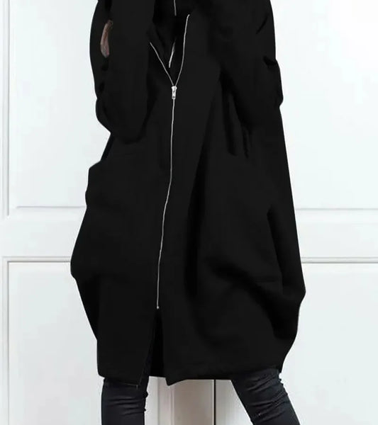 Loose Women's Hoodie Jacket Zipper Mid-Length Oversize Coat Casual Commute Style Comfortable Long Sleeve Sweatshirt Coat