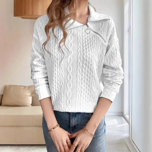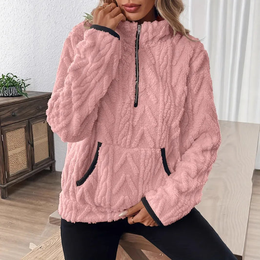 Casual Long Sleeve Hoodie Women's Zipper Collar Pullover Sweatshirt Autumn New Style Loose Fit Comfortable
