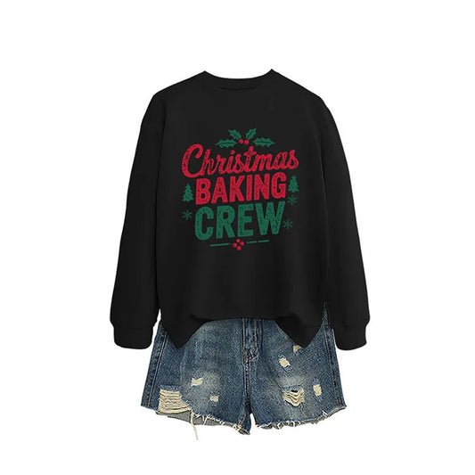 Comfortable Casual Women's Christmas Baking Crew Sweatshirt Autumn Winter Style Long Sleeve Round Neck Printed Loose Fit Top