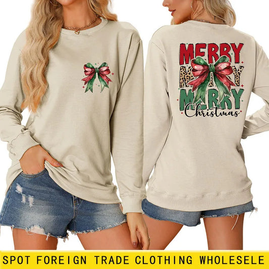 Comfortable Fashionable Double-Sided Print Ladies' Sweatshirt Merry Christmas Design Cotton Polyester Blend Long Sleeve Crew Neck Sweatshirt