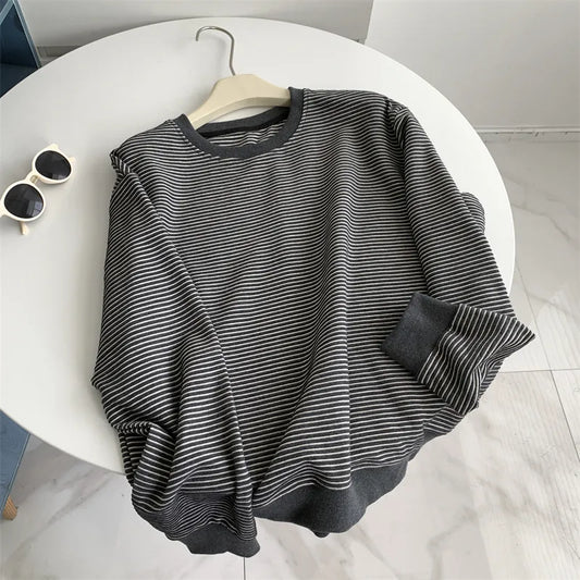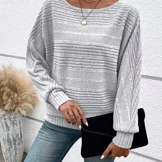 Women's Round Neck Batwing Sleeve T-shirt Autumn Winter New Style Striped Casual Loose Fit Fashion