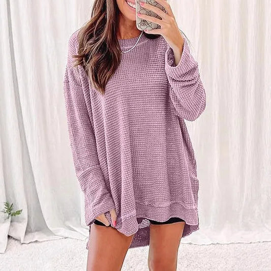 Ladies' Sweatshirt Round Neck Long Sleeve Solid Color Lazy Style Loose Fit Casual Top New Arrival Autumn Season Premium Feel