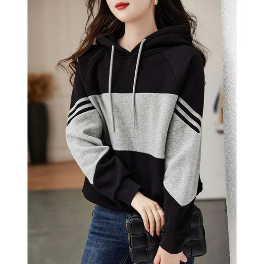 Spring Autumn New Style Women's Hoodie Casual Loose Fashionable Long Sleeve Polyester Blend Patchwork Color Block Design