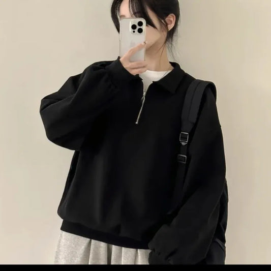 Olive Green Boyfriend Style Half Zipper Neutral Sweatshirt Women Autumn Winter New Lazy Casual Couple Tops Trendy