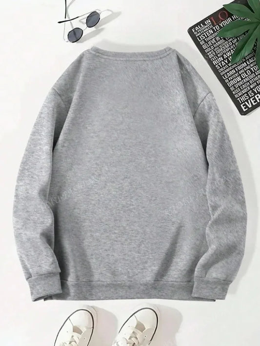 Fashionable Cotton Blend Cartoon Print Women's Sweatshirt Casual Sporty T-Shirt Street Style Round Neck Long Sleeve Top
