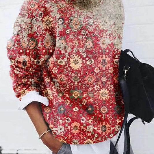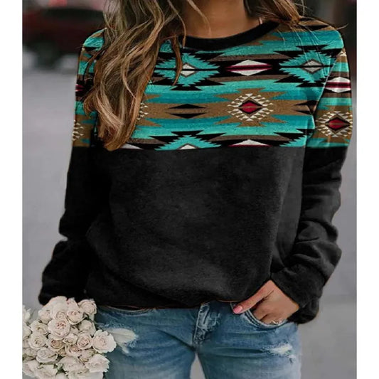 Retro Western Ethnic Geometric Print Ladies' Sweatshirt Cute Fresh Sweet Style Loose Fit Long Sleeve Round Neck Polyester Fabric
