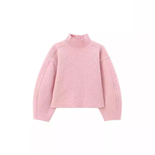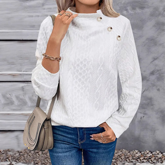 Fashionable High Collar Button Casual Sporty Sweatshirt T-Shirt Women's Style Classic College Fresh Sweet Long Sleeve Tumescent