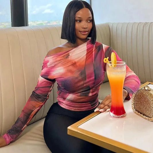 Trendy Tie Dye Print Round Neck Long Sleeve Crop Top T Shirt Street Style High Street Fashion Summer Women's Clothing