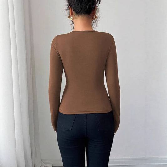 Slim Fit Long Sleeve Round Neck Women's T-shirt Spring Autumn New Style Casual Texture Style Commute Fashion
