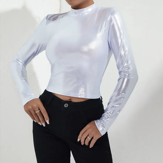 Slim Fit Long Sleeve T-Shirt Women's Fashion High Neck Solid Color Street Style Polyester New Autumn Collection Trendy Chic