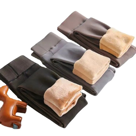 Thickened Fleece Lined One-Piece Leggings For Women Autumn Winter High Waist Slimming Skin-Clearing Long Trousers European Style