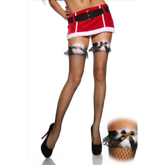 Sexy Red Long Tube Christmas Socks Beileisi Lace Edge Fishing Net Tights With Bell Feather 2104 Nylon Fabric Shaping Function