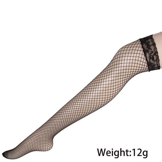 Long Tube Over Knee Fishing Net Stockings Women's Spring Summer Fashion Lace Trim Solid Color Net Tights Two Pairs Set