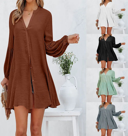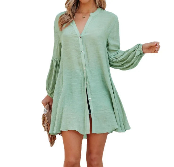 2022 autumn and winter europe and america cross border foreign trade new women's clothing solid color stitching casual loose cardigan button top t-shirt
