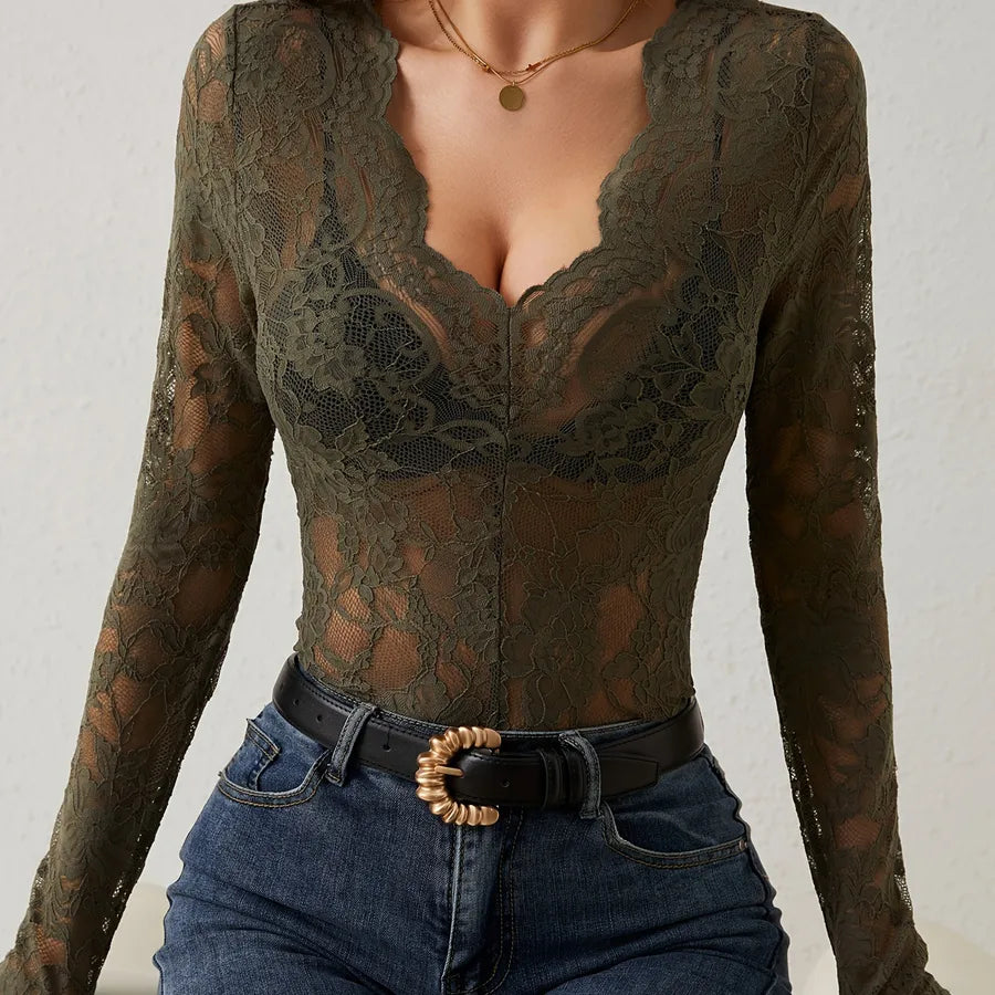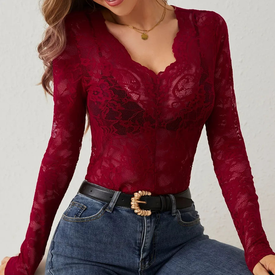 2025 Spring New Sexy Single Layer Flower Lace Fan Decoration Bottoming Shirt Top Female
