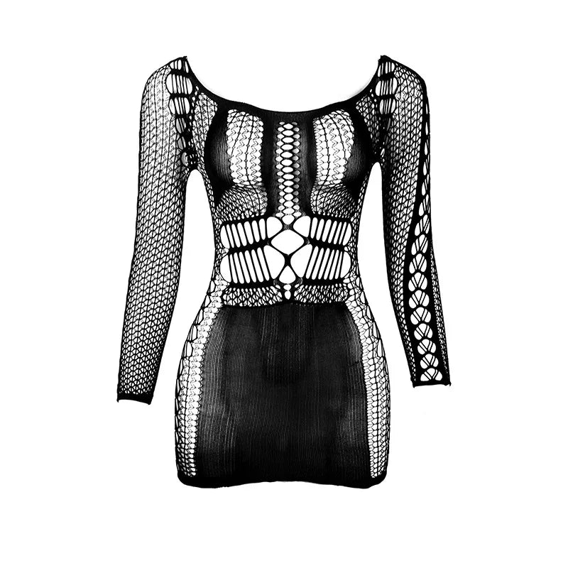 A083DS hot girl solid color sexy sexy lingerie hollow long sleeve sheath short temptation dress
