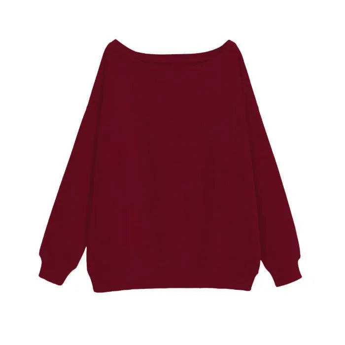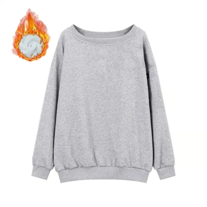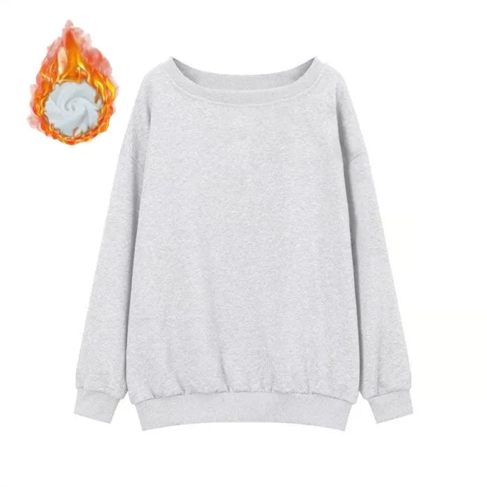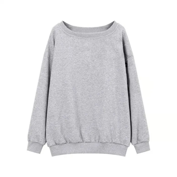 American Lazy Solid Color Shoulder Long Sleeve Hoodie Women Autumn Winter New Small Size Sweet Spicy Shoulder Bared Top