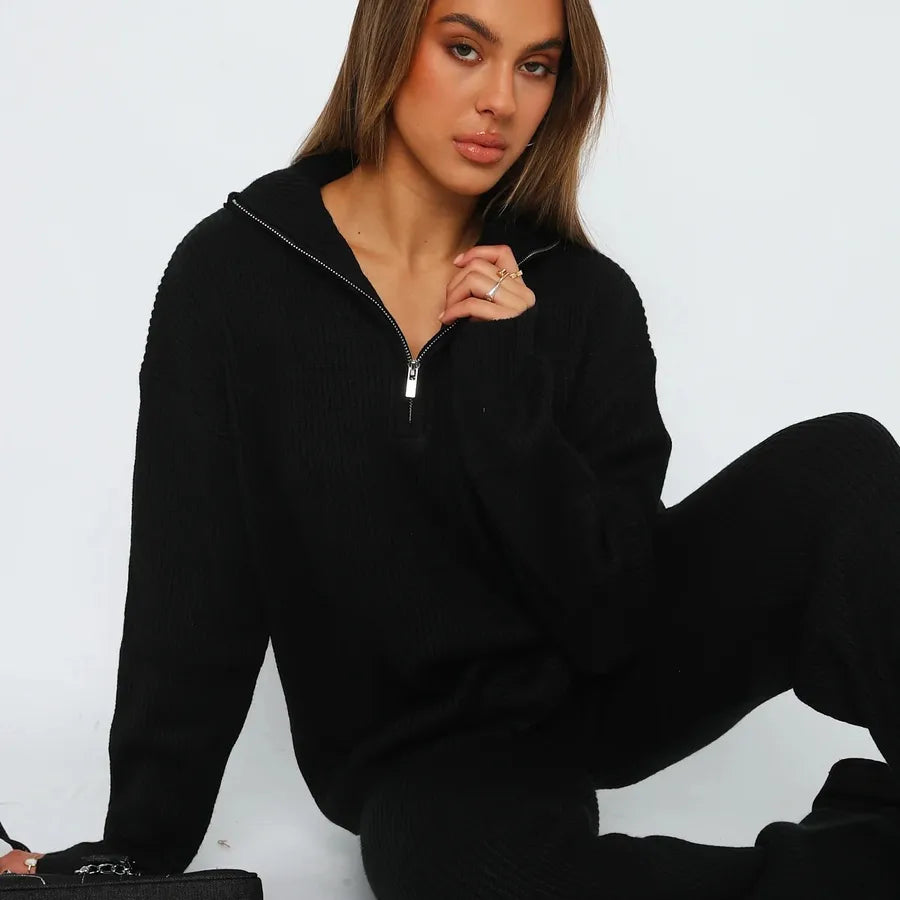 Autumn Winter Hot-Selling New Two-Piece Set Casual Comfortable Turn-Down Collar Long Sleeve Sweater Knitted Suit