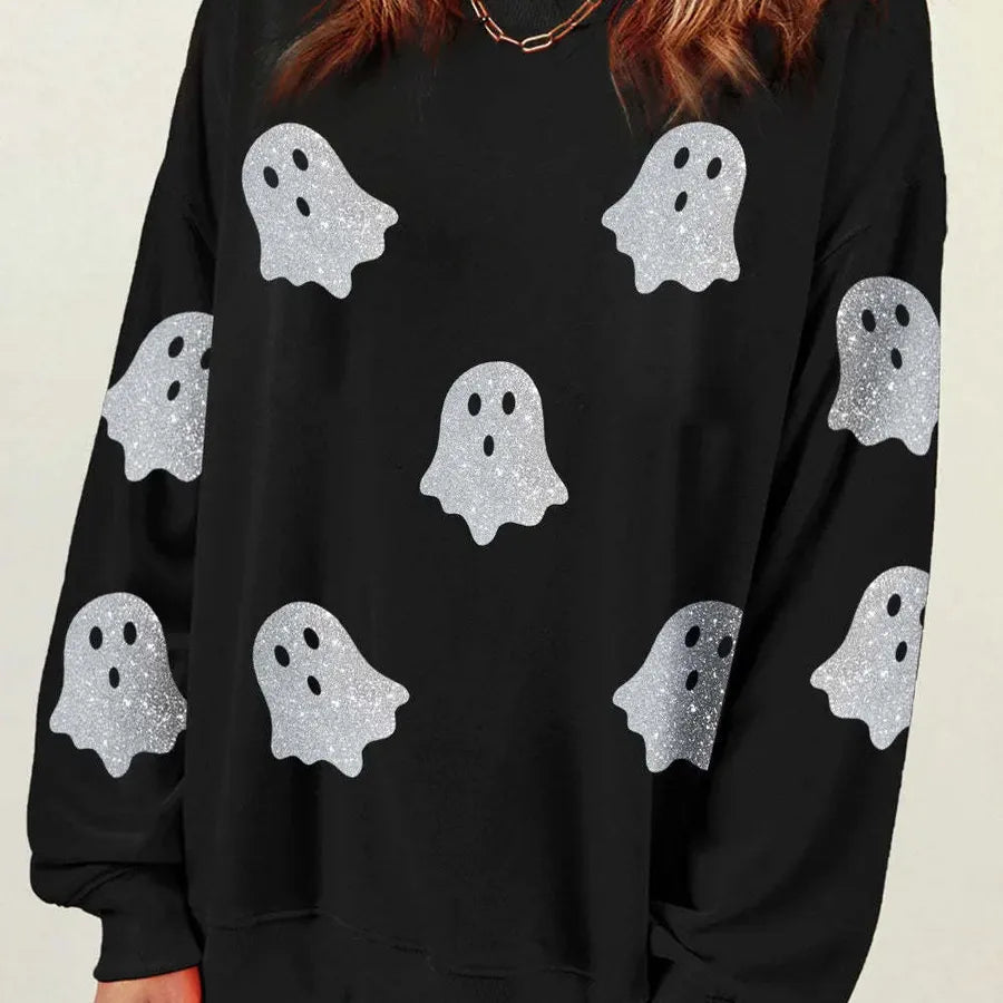 Autumn Winter New Style Casual Halloween Glowing Ghost Sweatshirt Loose Fit Comfortable Long Sleeve Round Neck Women's Top