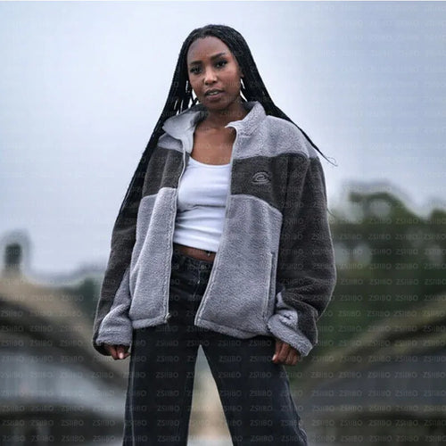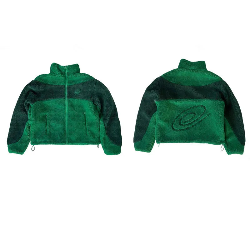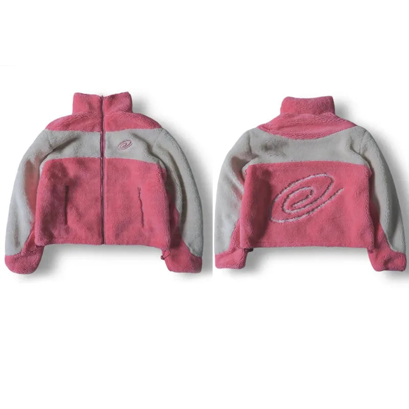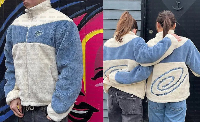 Autumn Winter New Style Warm Lamb Velvet Jacket Casual Street Sweatshirt Embroidered Patchwork Zipper Coat For Men And Women