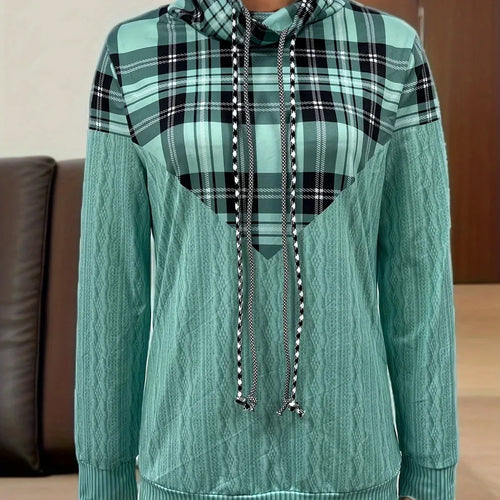 Autumn Winter Plaid Print Long Sleeve Hoodie Women's Casual Style Polyester Fabric Regular Sleeve Length Fashionable Hooded Sweatshirt