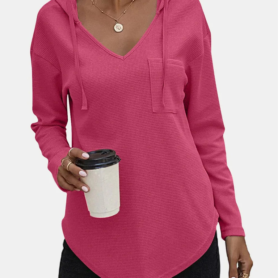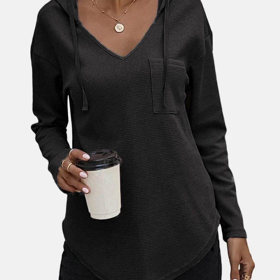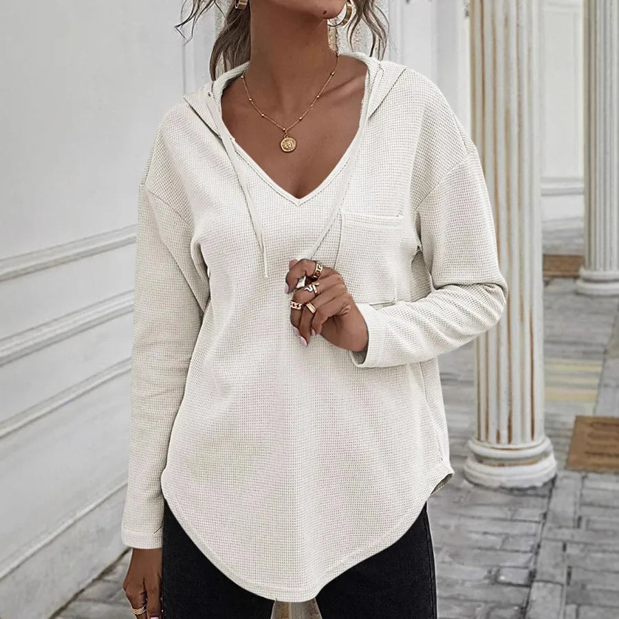 Casual Fashionable Long Sleeve Hooded Plaid T-Shirt European Women's Clothing V-neck Loose Fit Drawstring Elastic Waist
