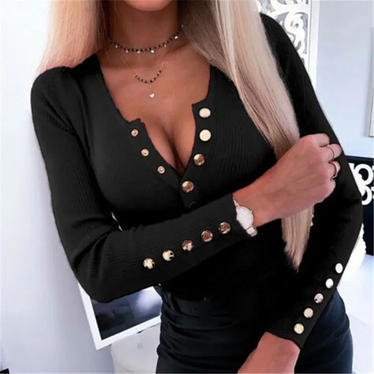 Casual Pure Color Long Sleeve Button Up Women's T-shirt Urban Style V-neck Cotton Blend Polyester Slim Fit Commute Fashion