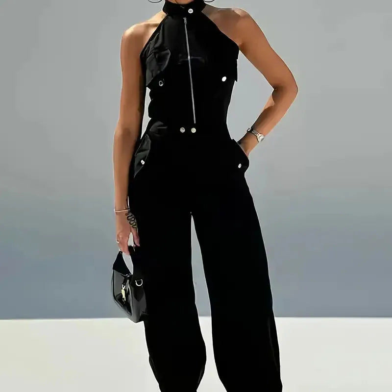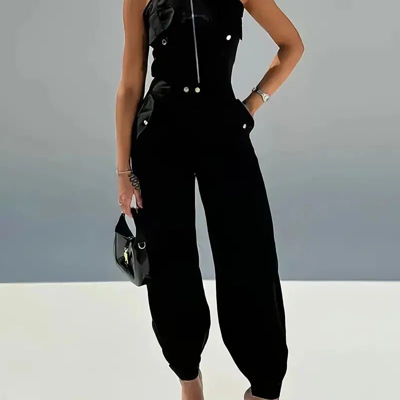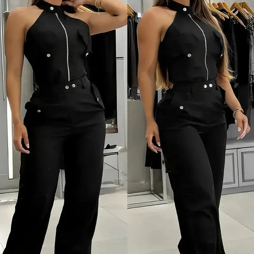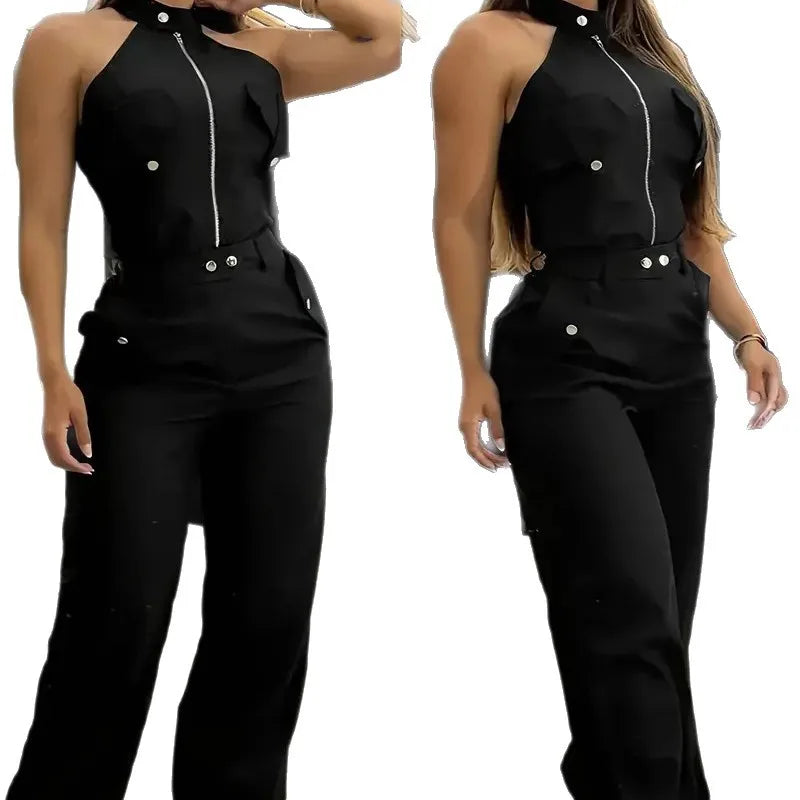 Casual Sexy Women's Summer Outfit Top And Pants Set Neck Hanging Workwear Pants Two-Piece Suit Style