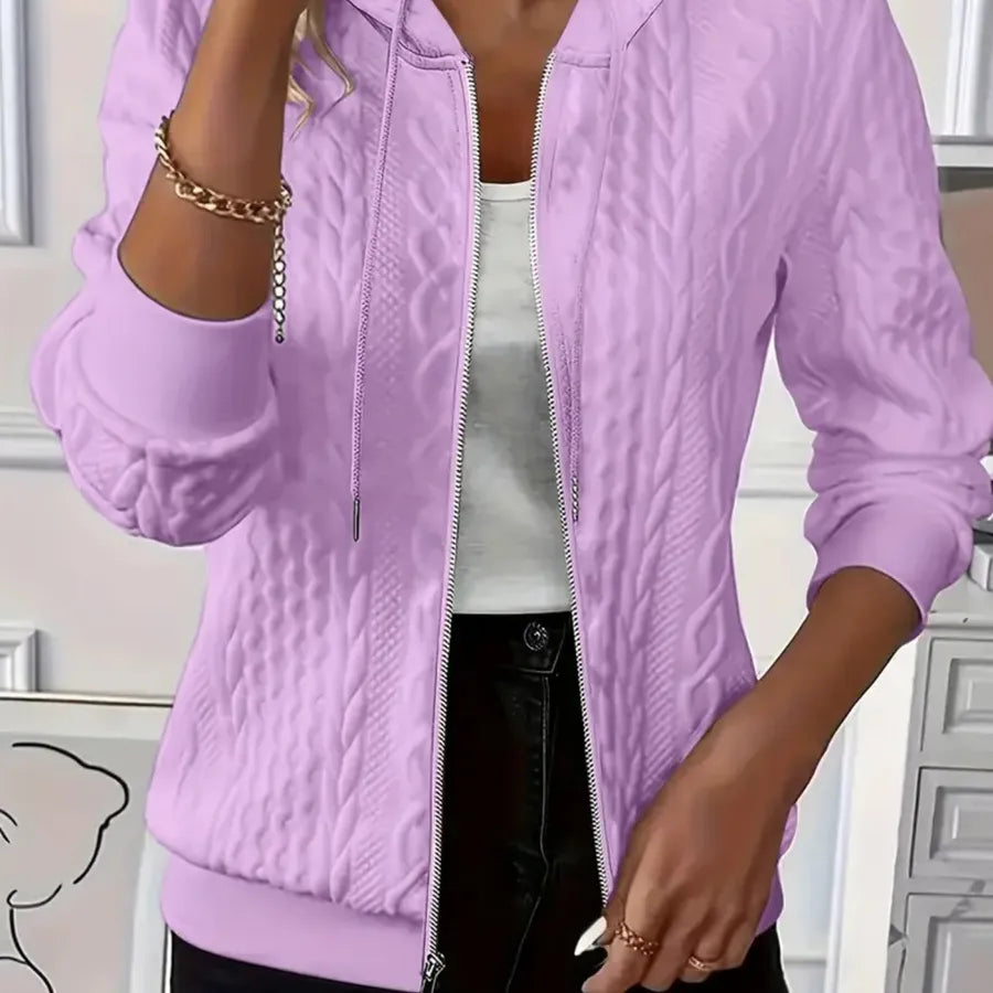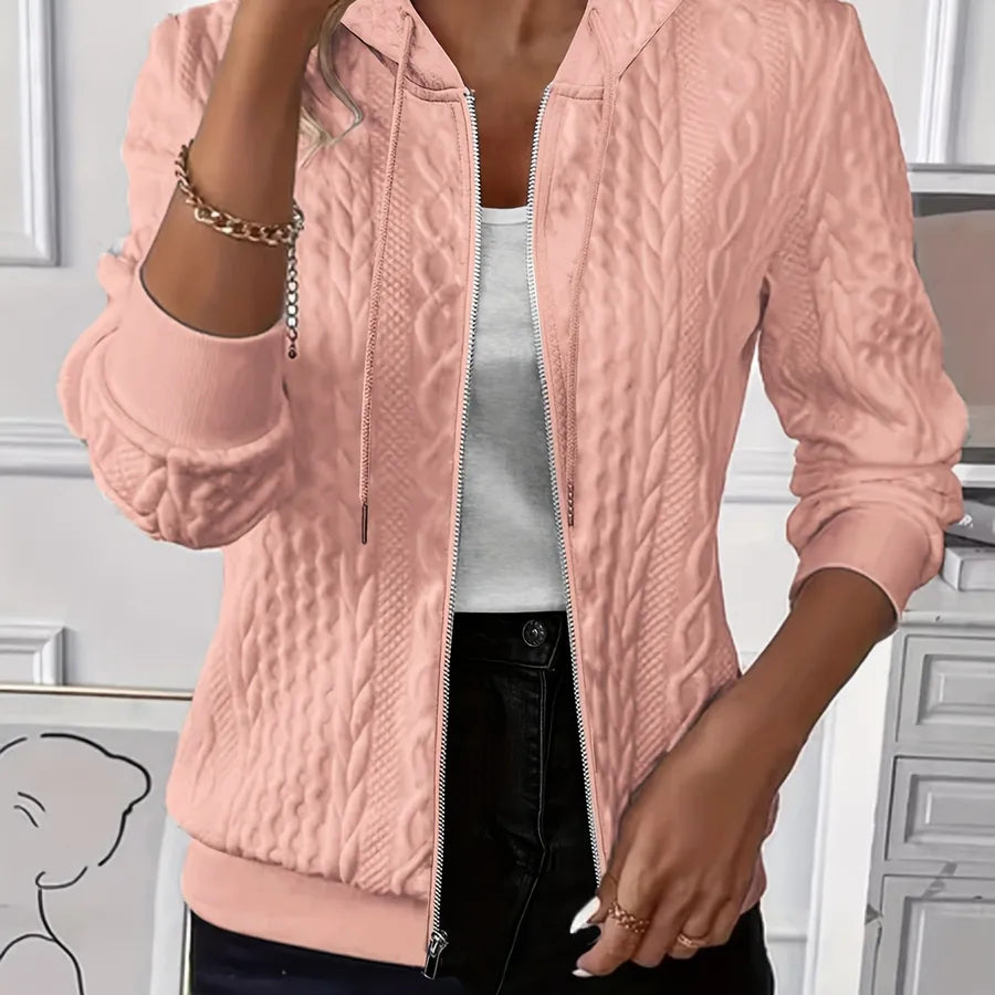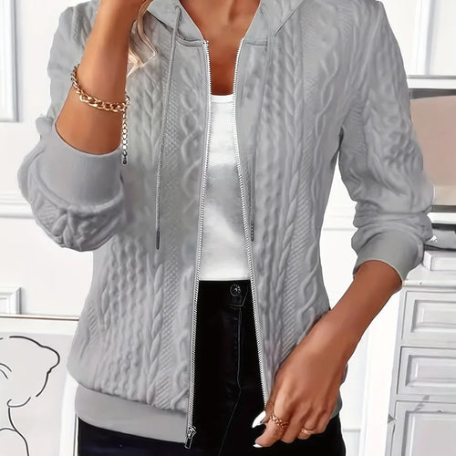 Casual Style Women's Hooded Zipper Sweatshirt Trendy Floral Patterned Long Sleeve Polyester Blend