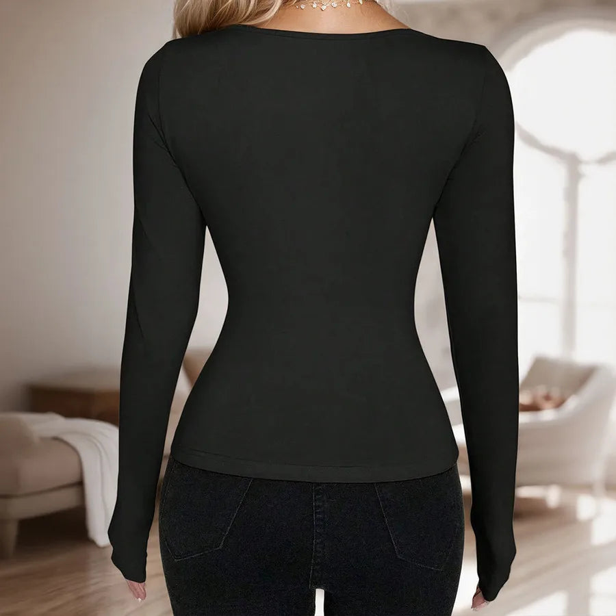 Chic Short Sleeve Long T-Shirt Women's Autumn Winter Slim Fit Low Neck Cardigan Sweet And Spicy Style Round Neck Knitted Top