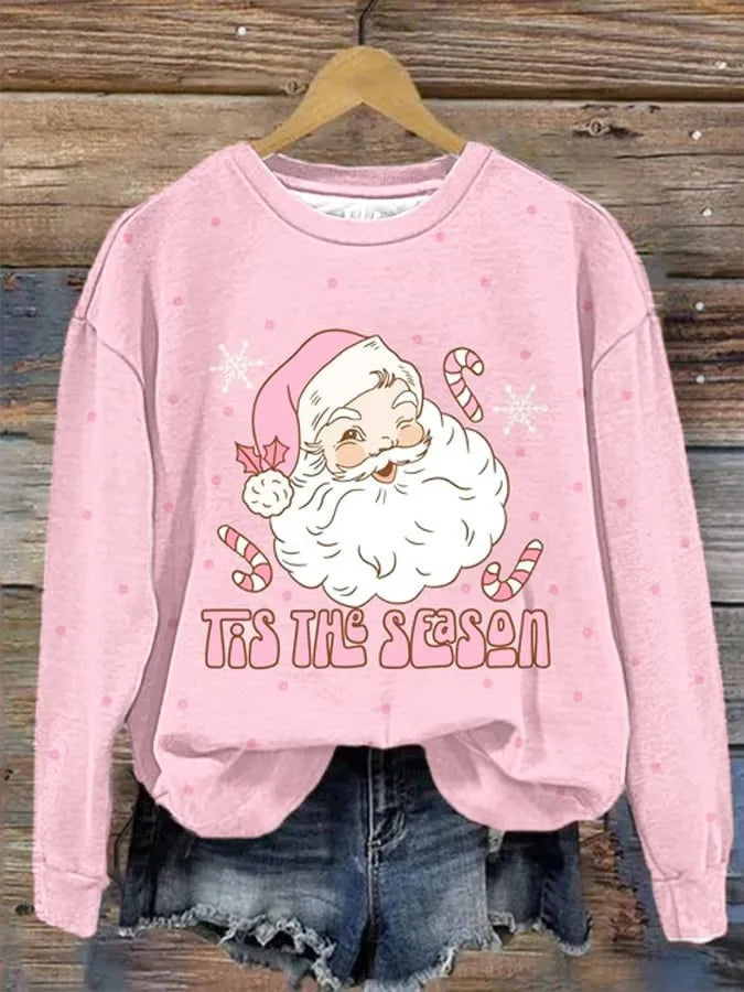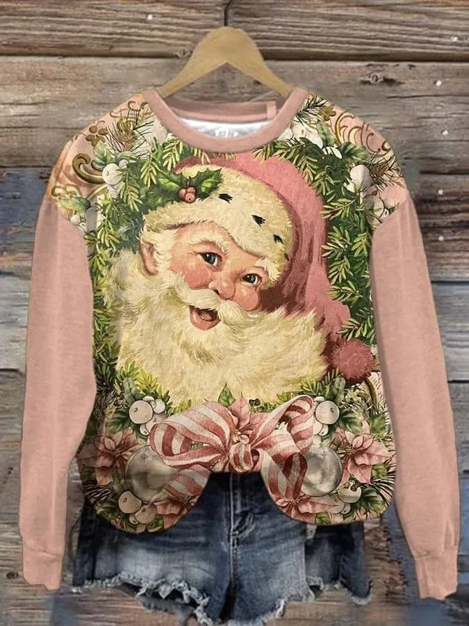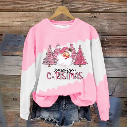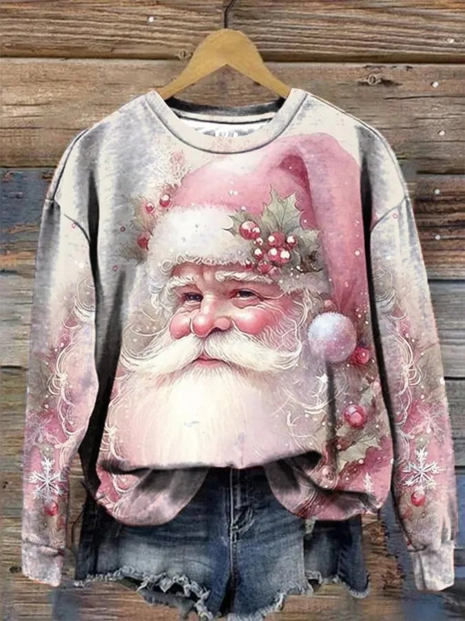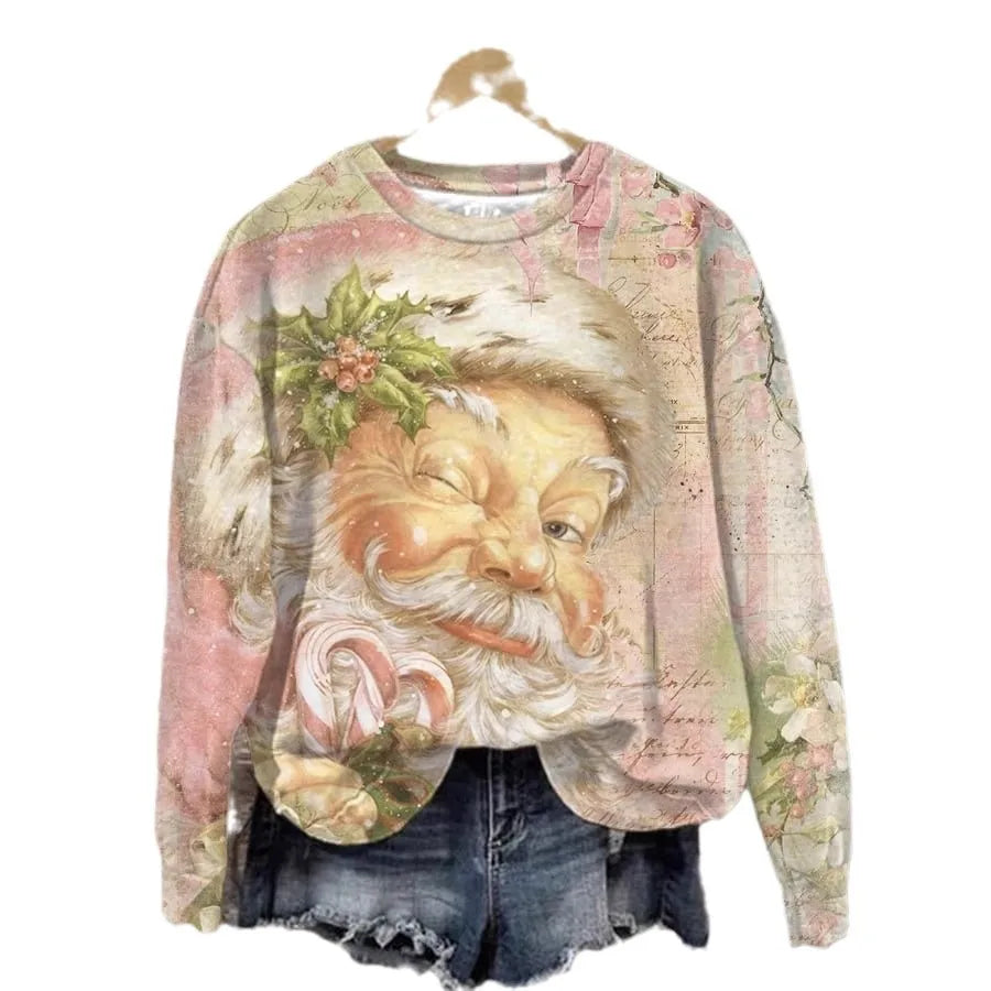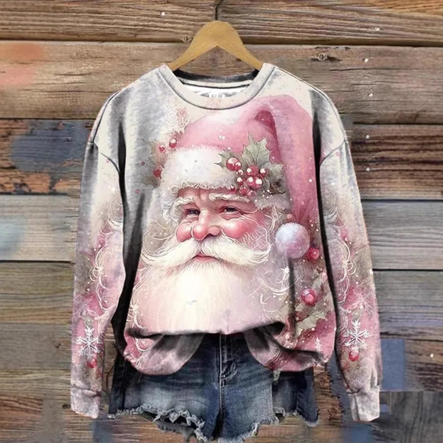 Christmas 3D Digital Print Ladies' Round Neck Sweatshirt Comfortable Long Sleeve Overhead Shirt Cute Fresh Sweet Style Loose Fit