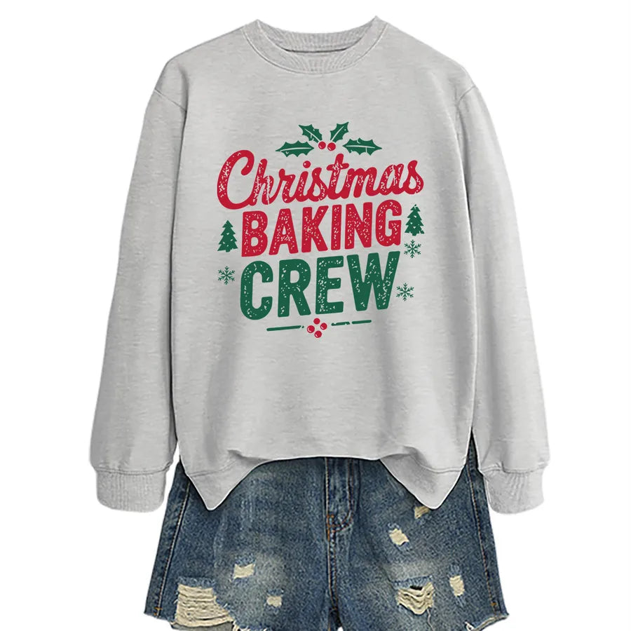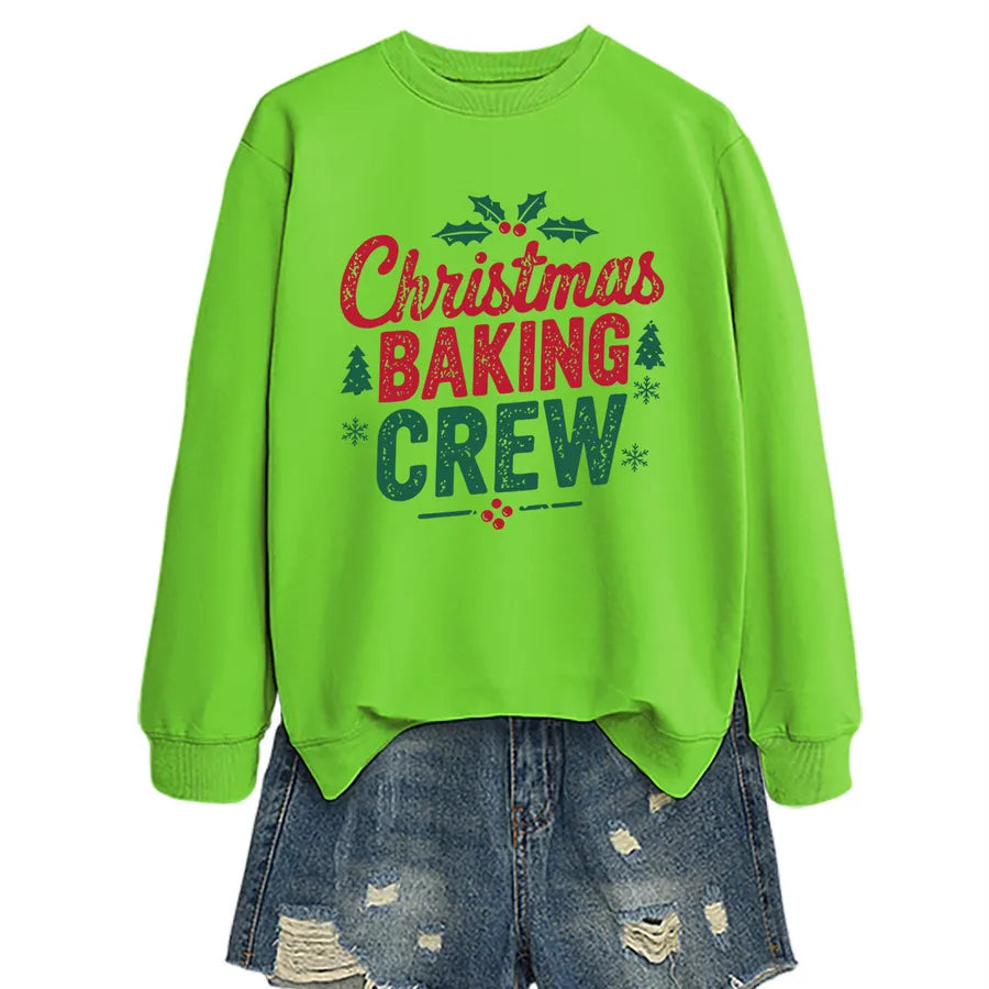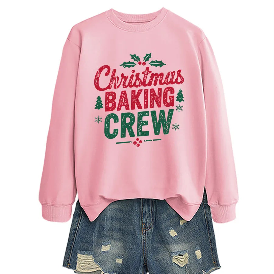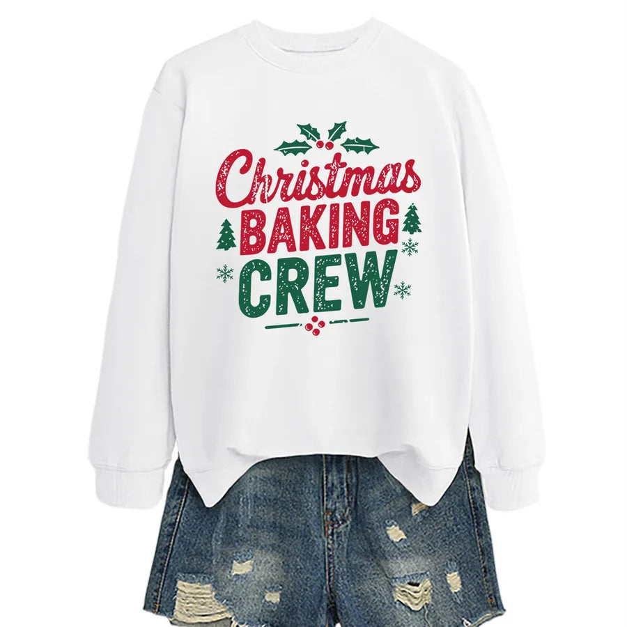 Comfortable Casual Women's Christmas Baking Crew Sweatshirt Autumn Winter Style Long Sleeve Round Neck Printed Loose Fit Top