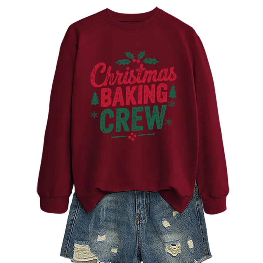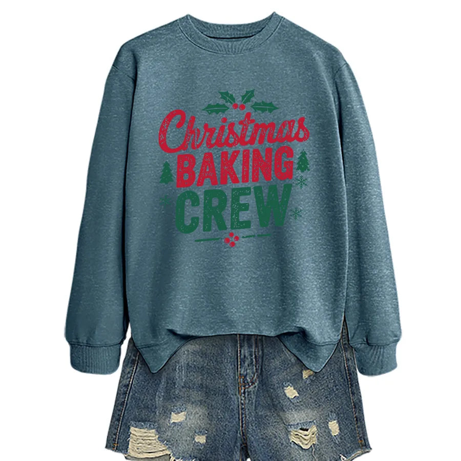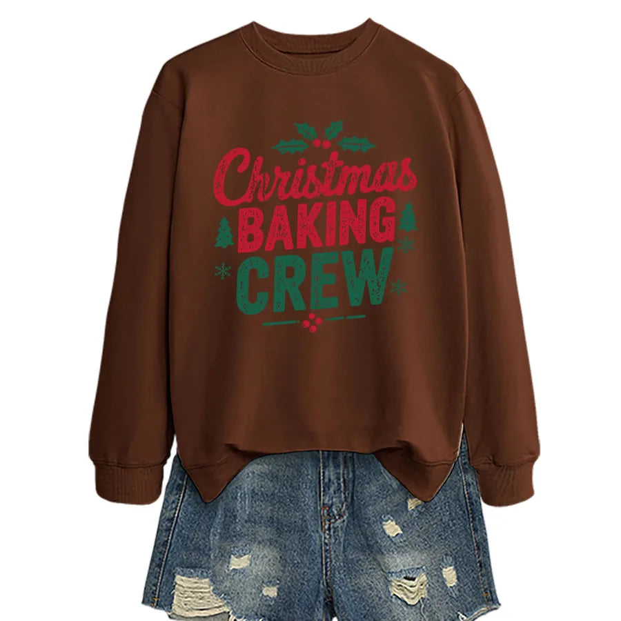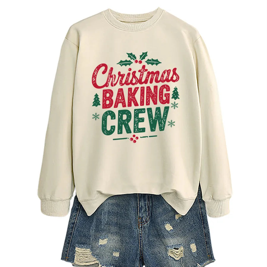Comfortable Casual Women's Christmas Baking Crew Sweatshirt Autumn Winter Style Long Sleeve Round Neck Printed Loose Fit Top