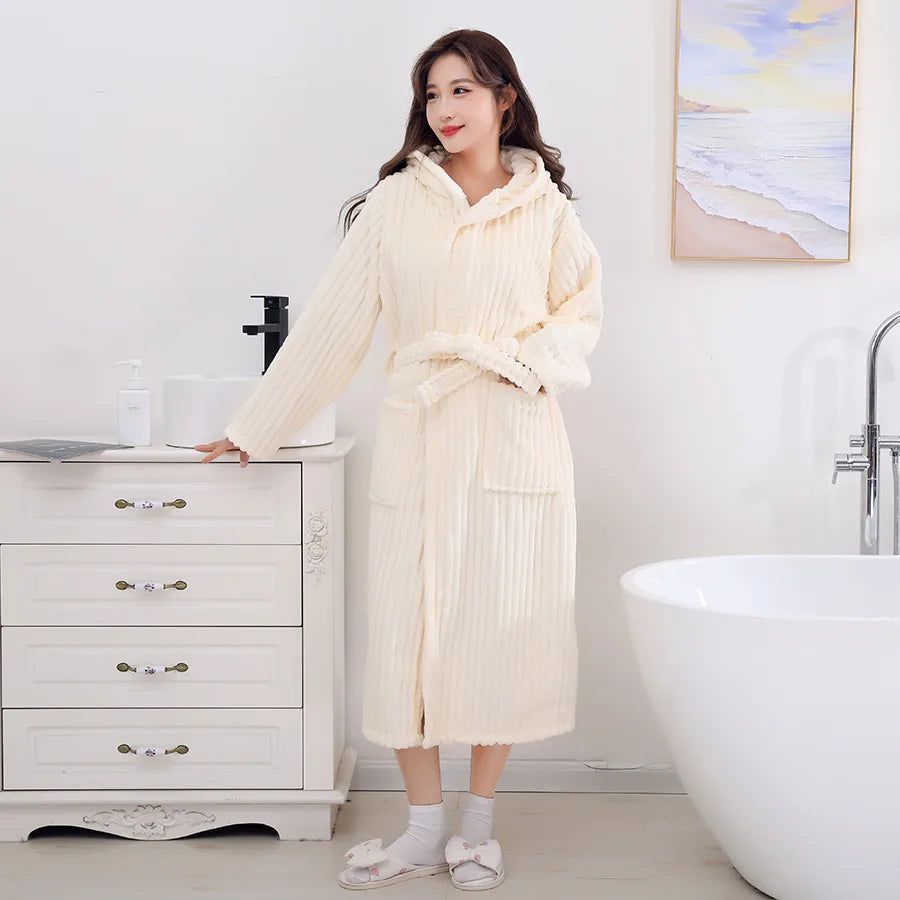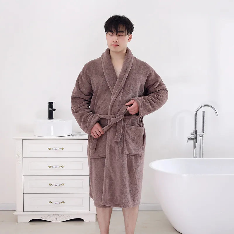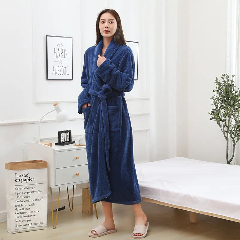 Coral Fleece Bathrobe Soft Thickened Adult Couple's Home Nightgown for Men and Women Wearing Bathrobe Strap Long Sleeve Bath Dress