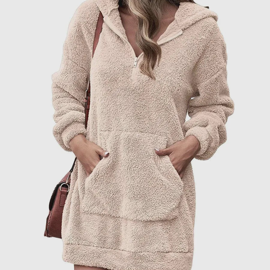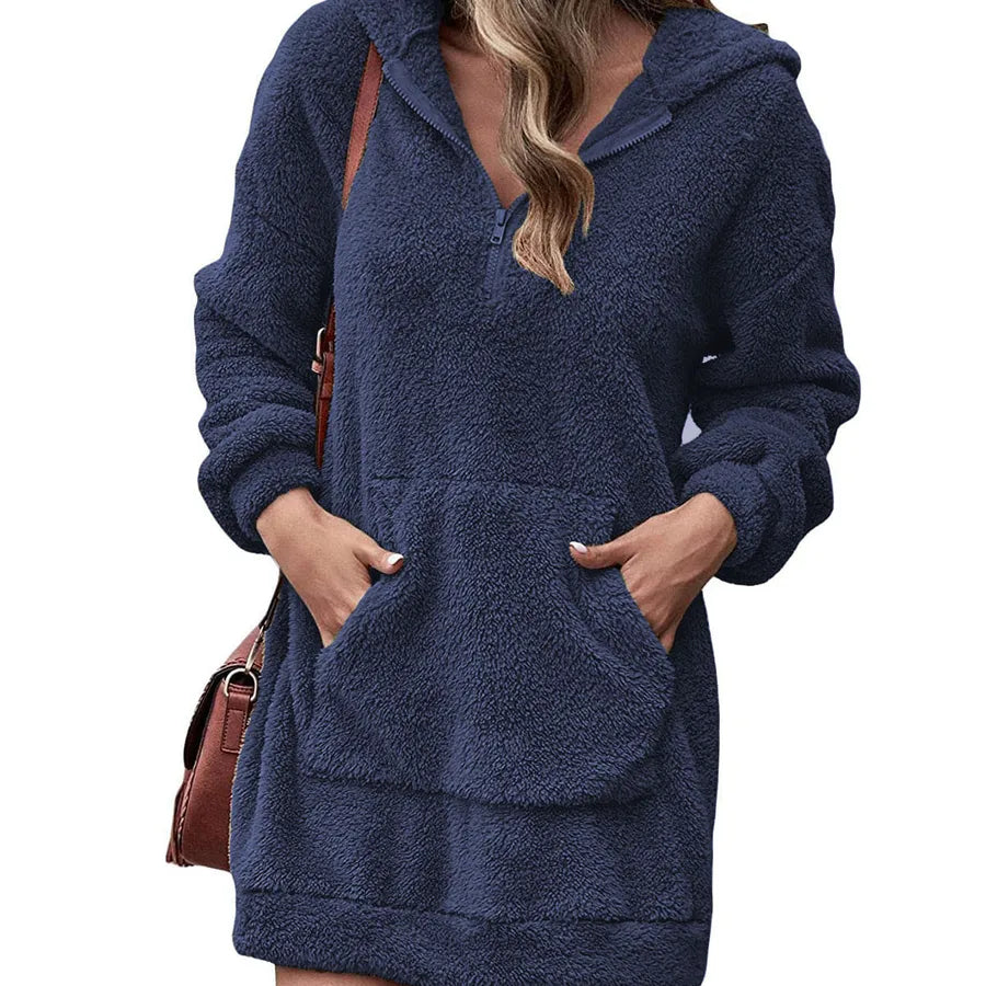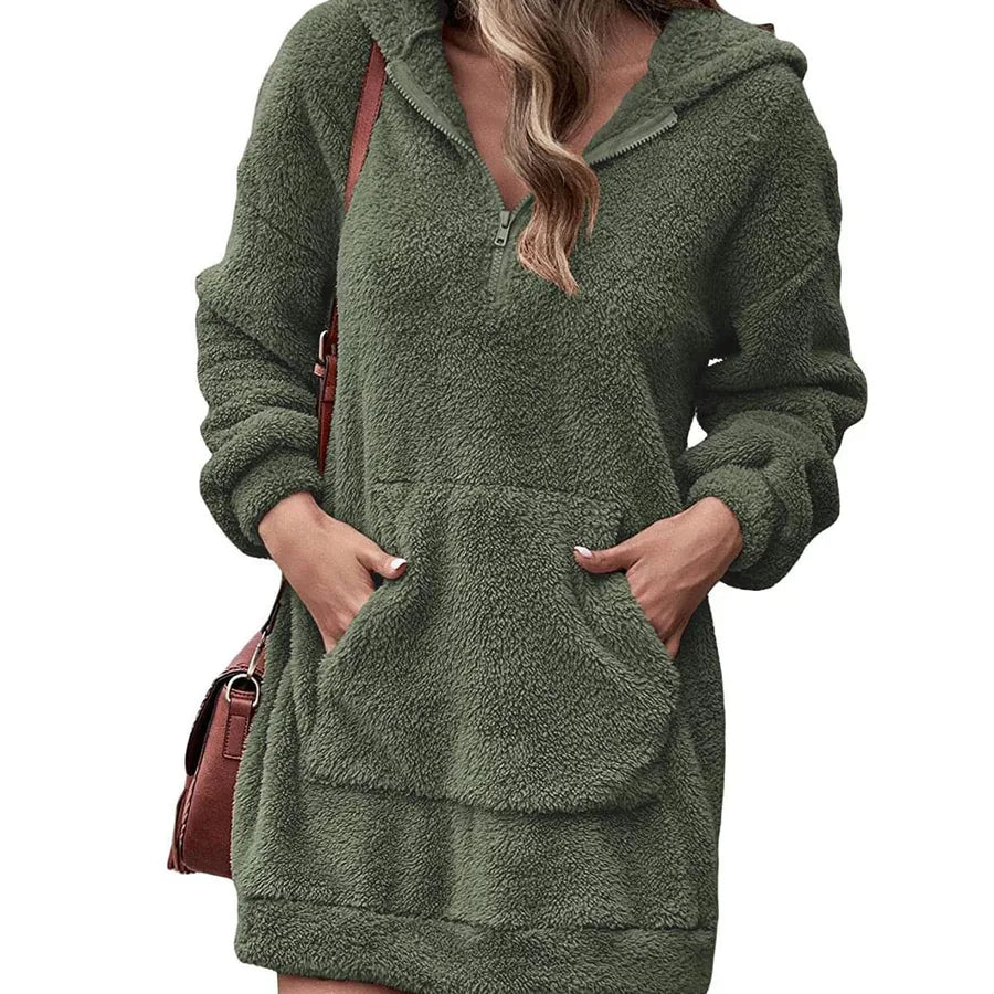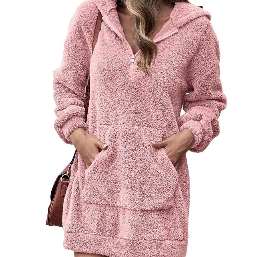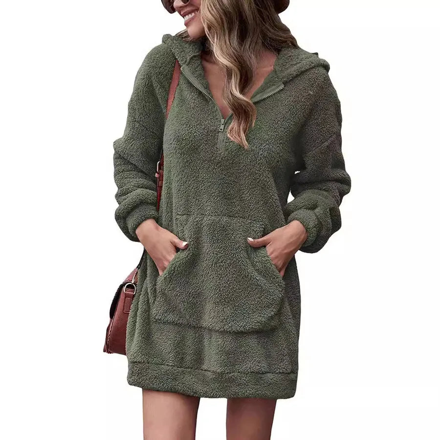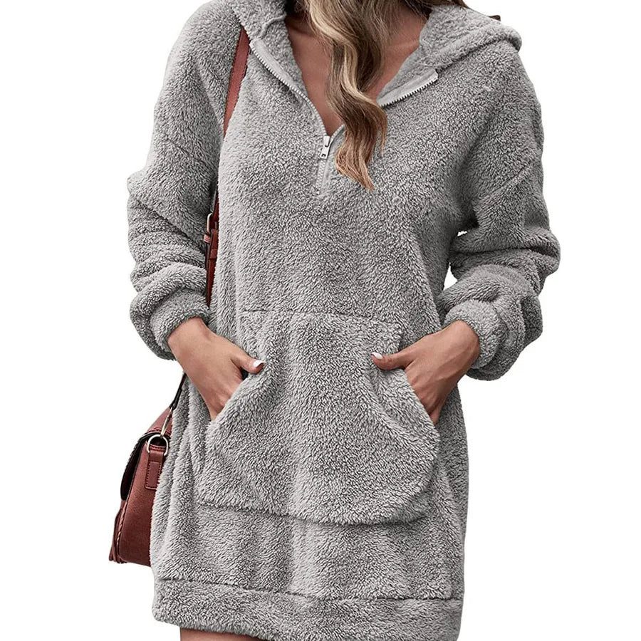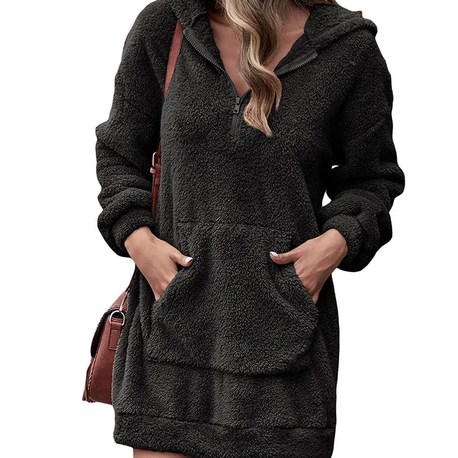 Double-Sided Fleece Hooded Jacket With Zipper And Pockets For Women Autumn Winter Loose Fit Sweatshirt Outerwear
