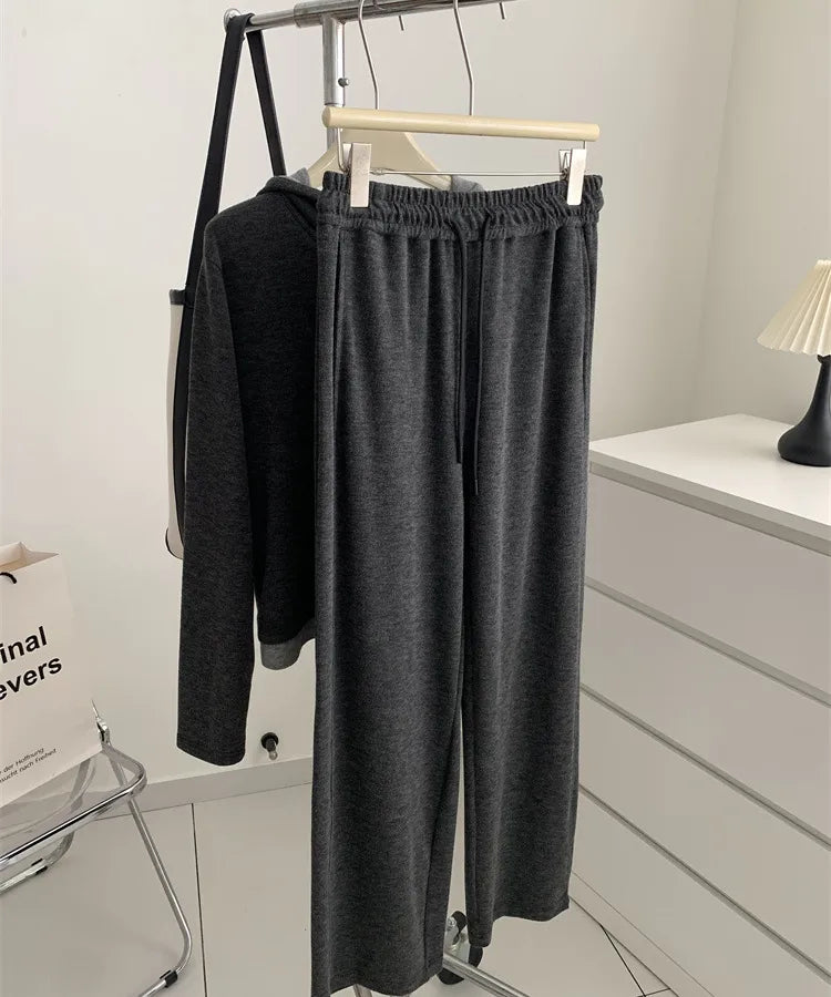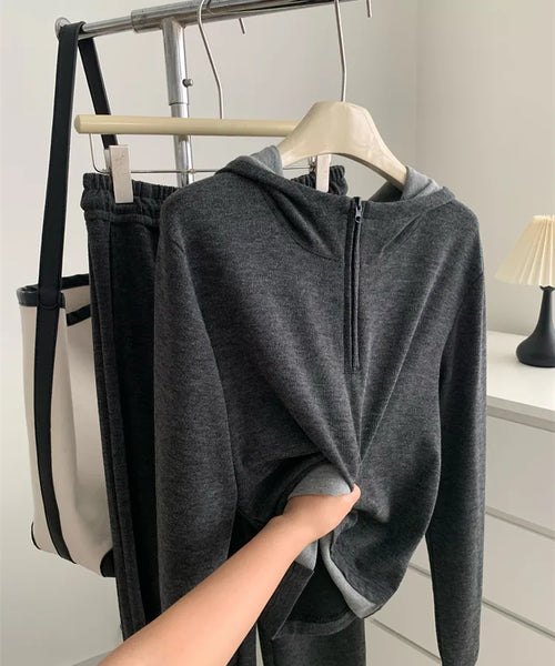 Elegant Commuter Lazy Girl Set Women's Design Sense Half Zip Color Block Hoodie Wide Leg Pants Two Piece Set Autumn Fashion Casual Outfit