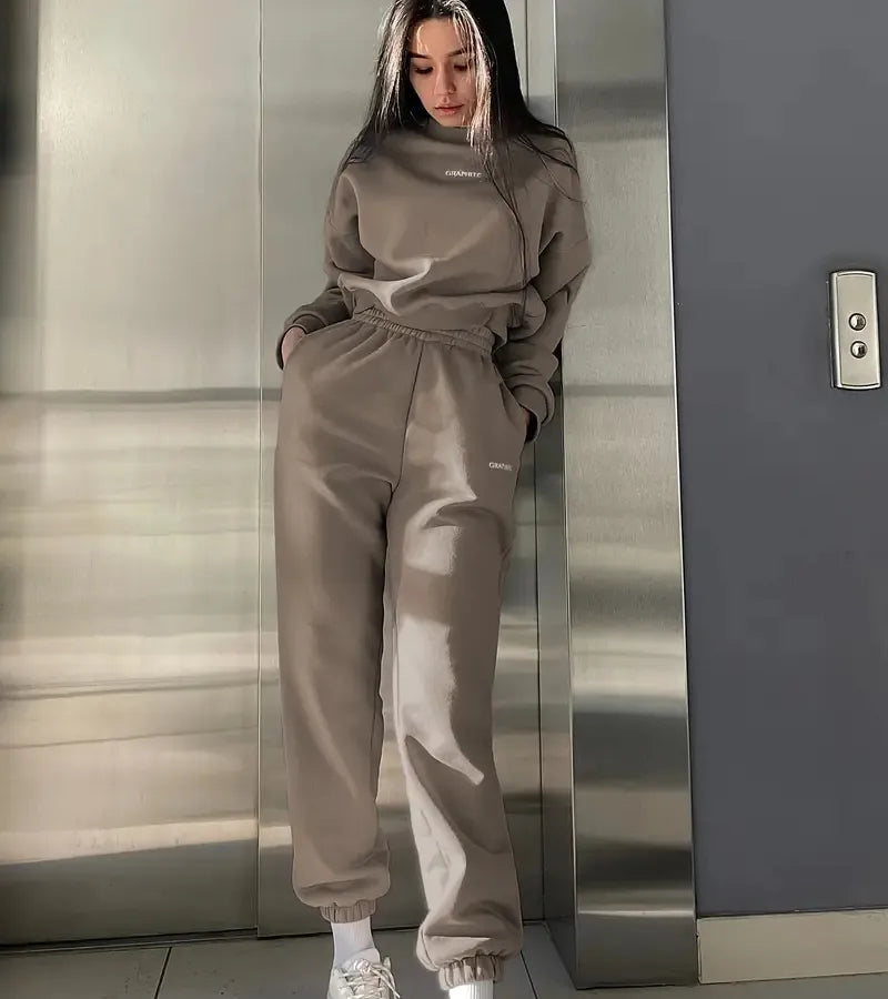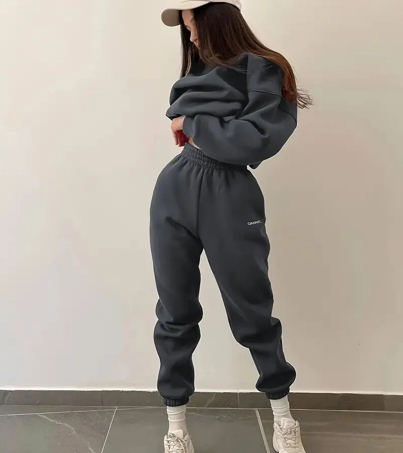 Elegant Embroidered Slim Fit Casual Sportswear Hoodie Pants Set Women's Fashionable Comfortable Polyester Long Sleeve Streetwear