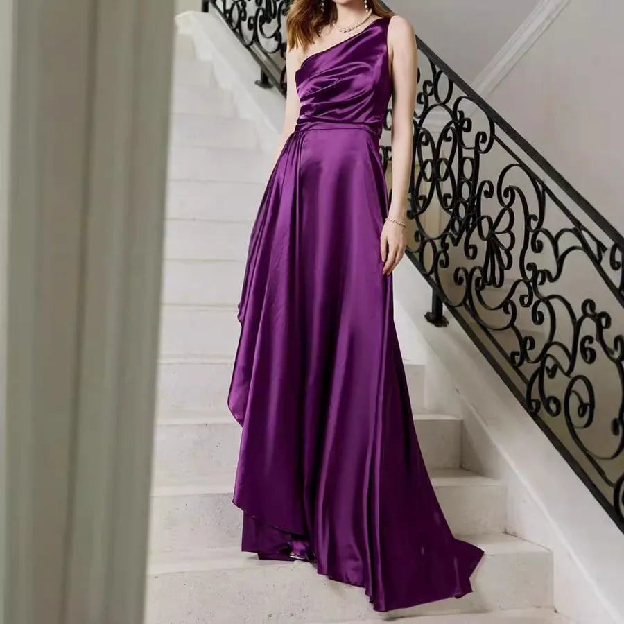 Elegant European Wedding Dress Women's Strapless Evening Gown Party Long Skirt Pure Polyester Fabric No Sleeve Belted Waist