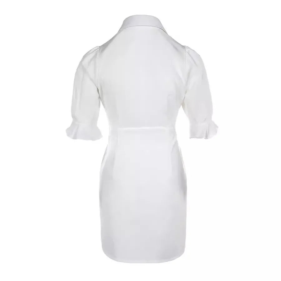 Elegant Pure Color Petal Sleeve High Waist A-Line Skirt Shirt European Style Women's Fashion Spring Autumn Season