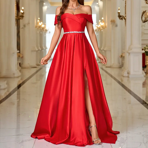Elegant Pure Color Summer New Style Dress Wedding Toasting Ceremony Evening Gown One Shoulder Sleeveless Polyester Fabric